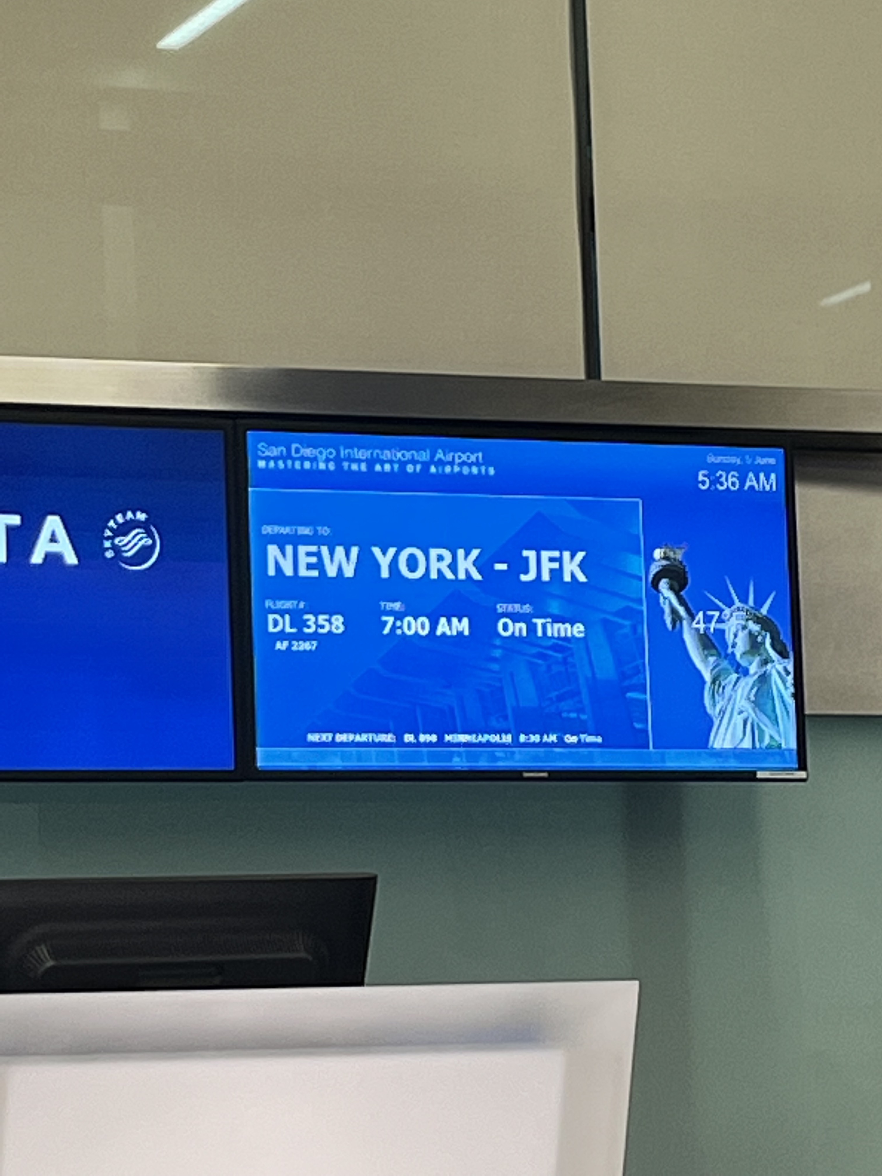 We left San Diego early and got to NYC on time as the picture suggests. The layover in NYC was simple and then we were on our second leg to Athens. This leg was a good 9 hours and I started out by playing a game.