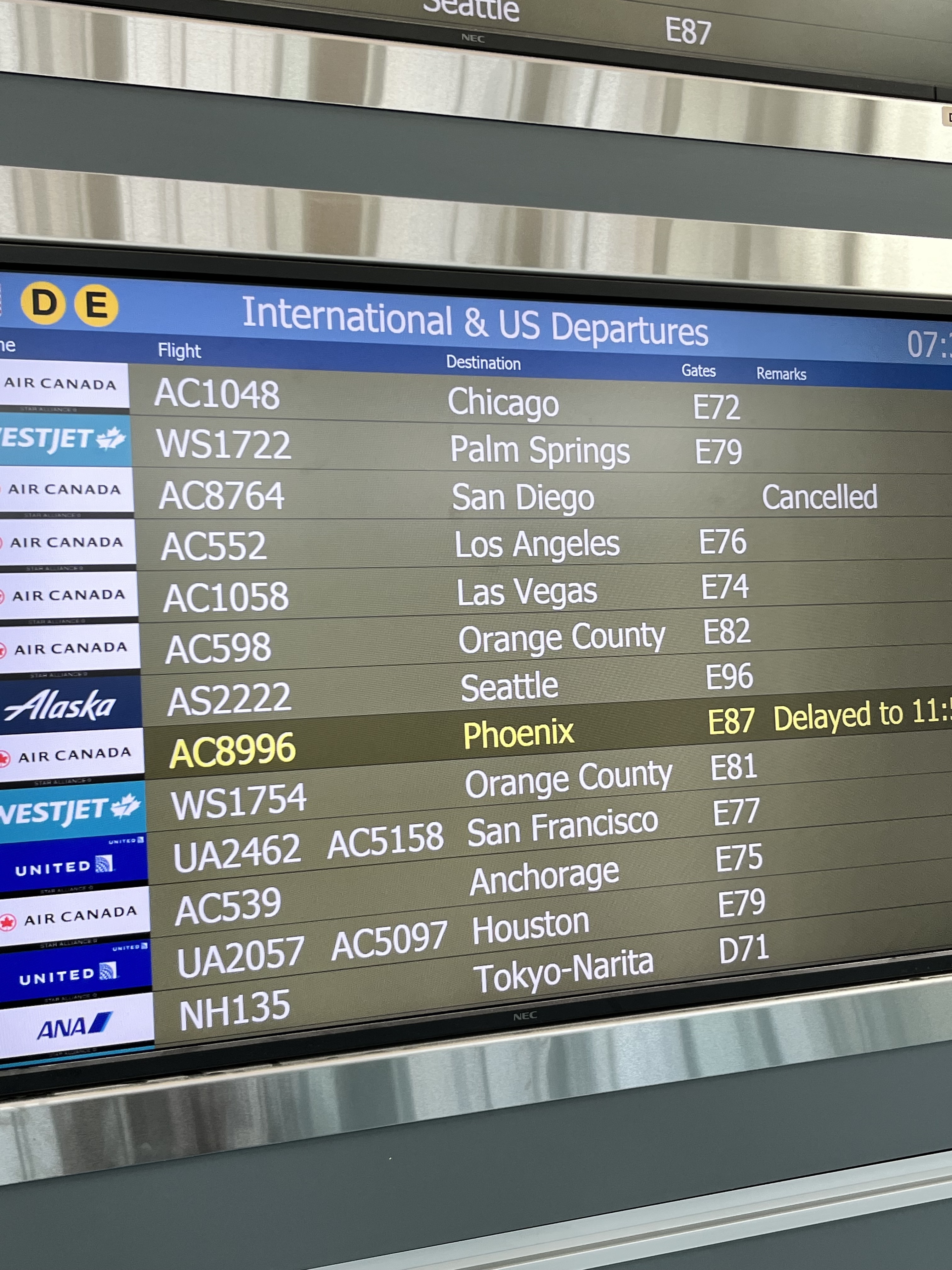 Everything was looking up after that and then….our flight to San Diego, the ONLY flight to San Diego was….Yep, cancelled.