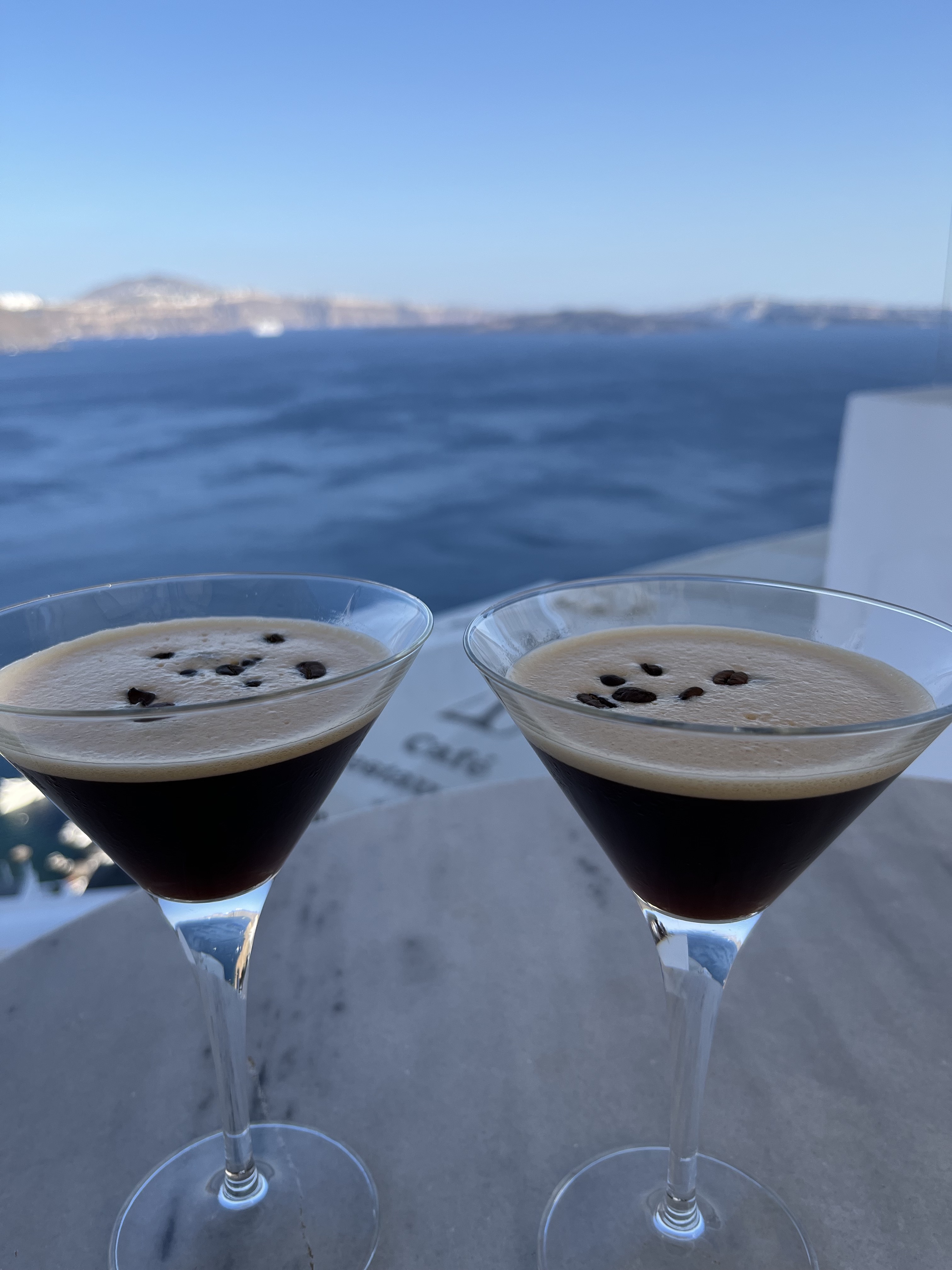 From the winery which was located in the middle of the island, we wanted to catch a ride on the bus down to Perrisa beach which is on the bottom of the island. We had to hike a ways back up the road to get to the bus stop. The bus is really convenient and a cheaper option to get around but it takes time to get from one side of the island to the other. We hopped off the bus in the town of Perrisa and walked seaside until we picked a beach bar to pop a squat. I don’t know why all the countries have amazing beach bars and we live in California and we have nothing like this.
